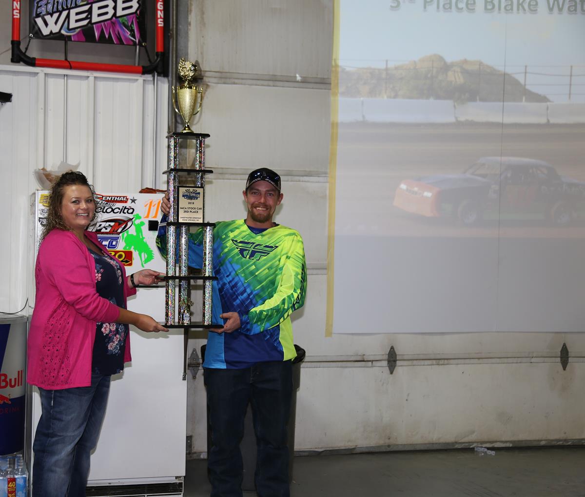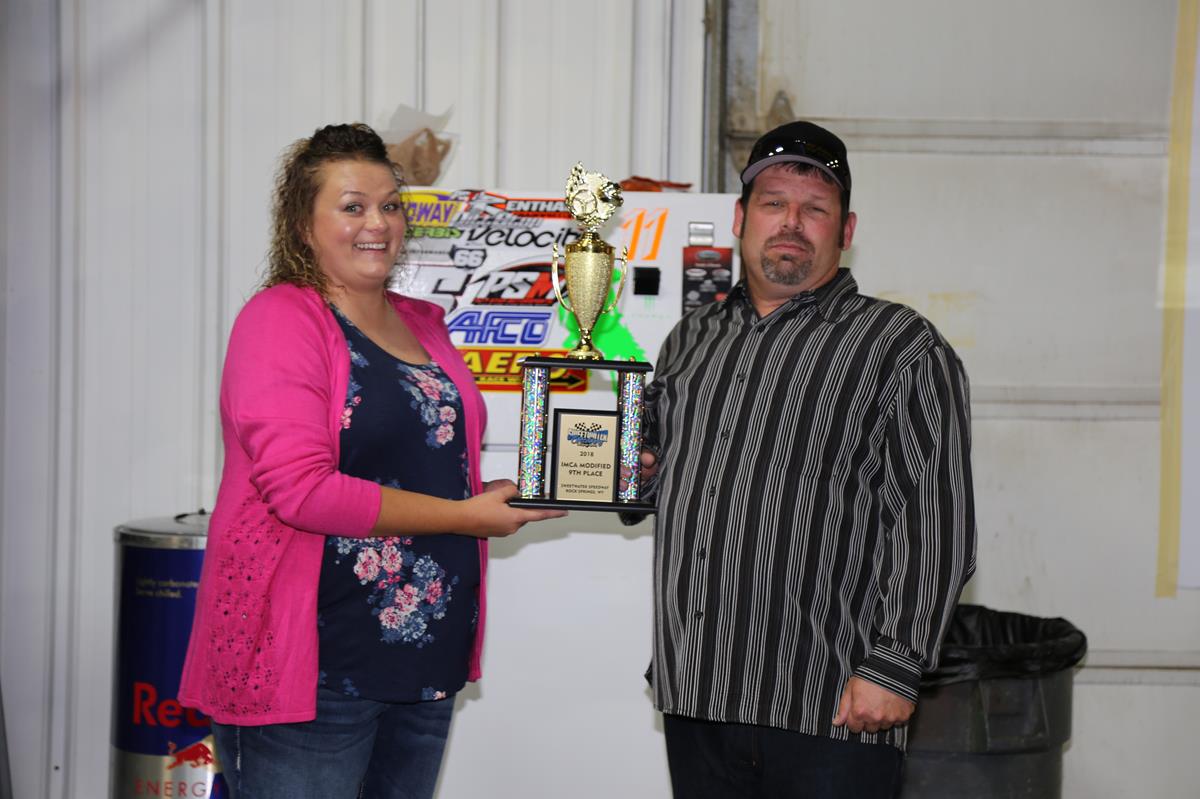 In the IMCA Norther Sport Mod Class, Jason Wright of Rock Springs took home the Championship Trophy for the 2nd year in a row. That was followed by 2nd Mikey Blackard of Colorado, 3rd David Pitt of Rock Springs, 4th Verlon Lee of Lyman, 5th Larry Kaml of Rock Springs, 6th Chuck Delp of Rock Springs, 7th Justin Wright of Rock Springs, 8th Traeger Sperry of Green River, 9th Myron Kaml of Green River, and 10th Ronnie Hults of Colorado. Mickey Blackard was also presented the 2018 IMCA Rookie of the Year.