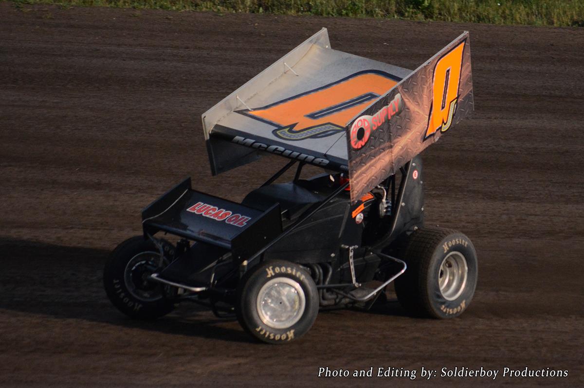 Patient around the bottom, McCune was able to hold off the last lap charge of Robert DeHaan through the final two turns. Chauncy Filler worked to the final podium step from 10th with Shad Petersen and 12th starting Mindy McCune completing the top five.